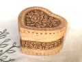 ハート型の形状のケースにバラのレリーフが施された白樺製の入れ物です。