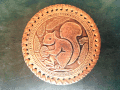 シベリアの貴重な白樺を用いて作られた円形の小物入れです。かわいいリスのレリーフが施されています。