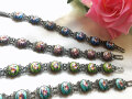 ロシアの七宝焼きフィニフチを線状細工で加工したブレスレットです。土台の線状細工はいぶし銀のような黒加工になっており、フィニフチのカラーが際立つよう工夫されています。