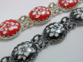 ロシアのエナメル細工フィニフチのブレスレットです。少し大きめのオーナメントにシックで現代的なデザインが人気。おしゃれのアクセントにいかがですか。