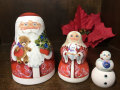 クリスマスモチーフが満載の極寒おじさん、雪娘、雪だるまのマトリョーシカです。マトリョーシカとしては形状も個性的です。