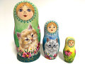小ぶりの3ピースマトリョーシカに、写実的な猫のかわいらしさが存分に表現された作品です。