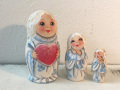 コブロフ工房のアーチストであるオレーシャ・スクリジナによる天使の3ピースマトリョーシカです。ニスを施していないマットな仕上がりでオリジナルの絵を最大限に楽しむことができます。