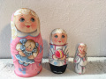 コブロフ工房のアーチストであるオレーシャ・スクリジナによる子供たちの3ピースマトリョーシカです。ニスを施していないマットな仕上がりでオリジナルの絵を最大限に楽しむことができます。
