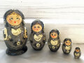 黒とグレーをベースにしたモノトーンマトリョーシカです。高さ14cm、セルギエフ・ポッサードより買い付け品