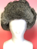 グレーのラビットファーのロシア帽(ウシャンカ)です。 極寒の気候で頭の防寒対策はとても大事。 上で留めてある紐をほどいて耳をたらすことで耳や首も暖かにお召しいただけます。