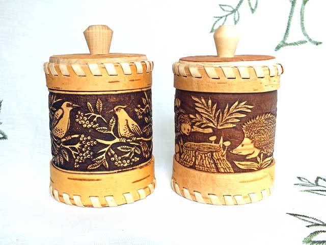 森の動物のキャニスタ2種☆ベレスタ_白樺細工☆ロシア雑貨