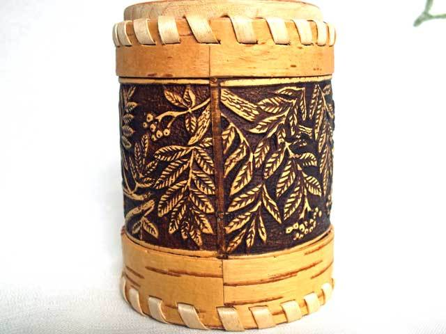 商品説明: ロシア製の白樺キャニスタです。高さ8cm、直径6cm。