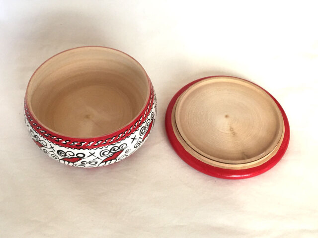 メゼーニ文様小箱(丸白)☆ロシア雑貨☆伝統柄の小箱