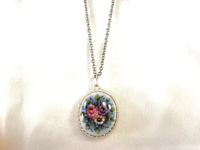商品説明: ロシアのエナメル細工「フィニフチ」と、線状細工を組み合わせたロケットペンダントです。開いて中に写真などを入れ込むことができます。
