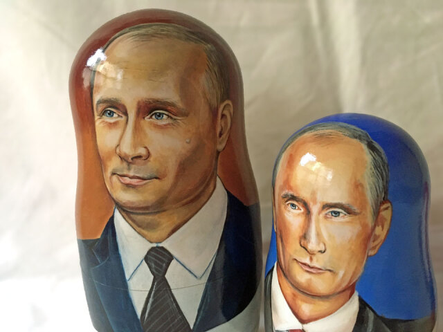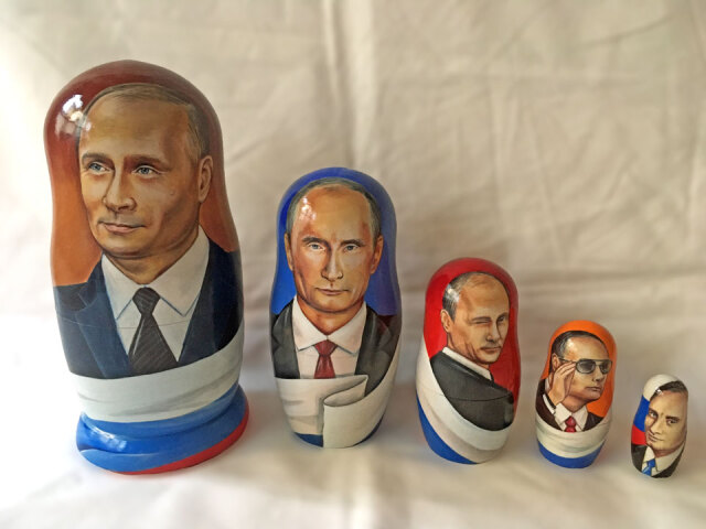 商品説明: ロシア大統領を描いた特注品のマトリョーシカ5ピースです
