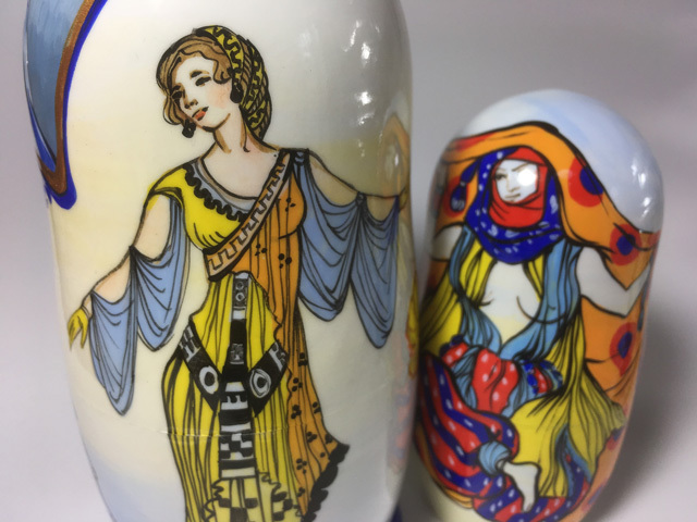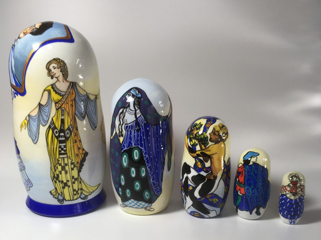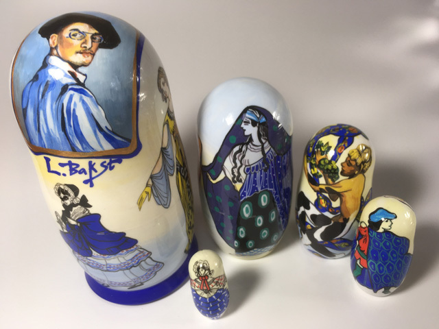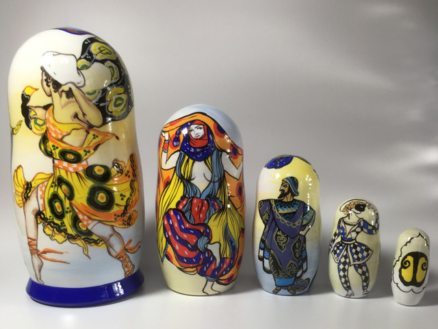 20世紀前半に舞台芸術家として活躍したバクストの絵画作品群をモチーフにしたマトリョーシカ。