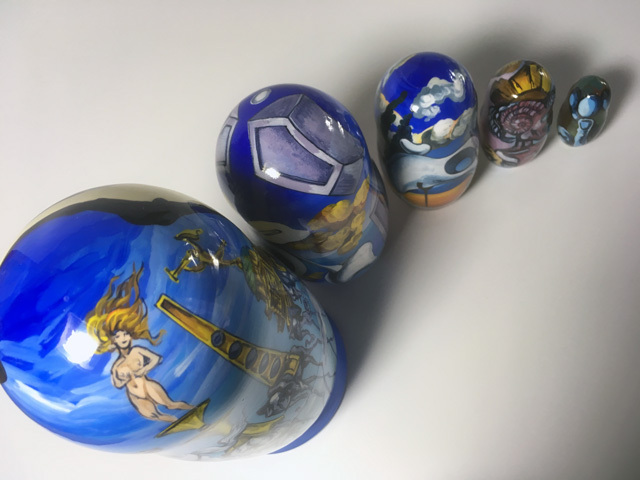 シュールレアリズムの画家、鬼才ダリの絵画作品群をモチーフにしたマトリョーシカ。