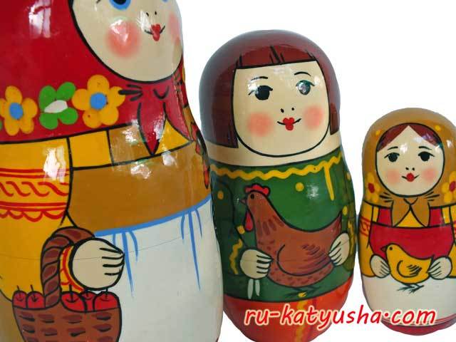 スキルの確かなザダロージナヤさんの腕による昔ながらのタイプの色鮮やかなマトリョーシカです。 黒い鶏を抱えたクラシックモチーフを採用しています(マトリョーシカの歴史をご参照ください)。ぜひ一つは持っておきたい、もっともロシアらしいマトリョーシカですね!