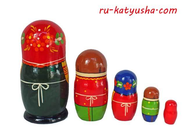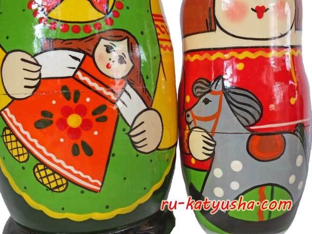 スキルの確かなザダロージナヤさんの腕による昔ながらのタイプの色鮮やかなマトリョーシカです。