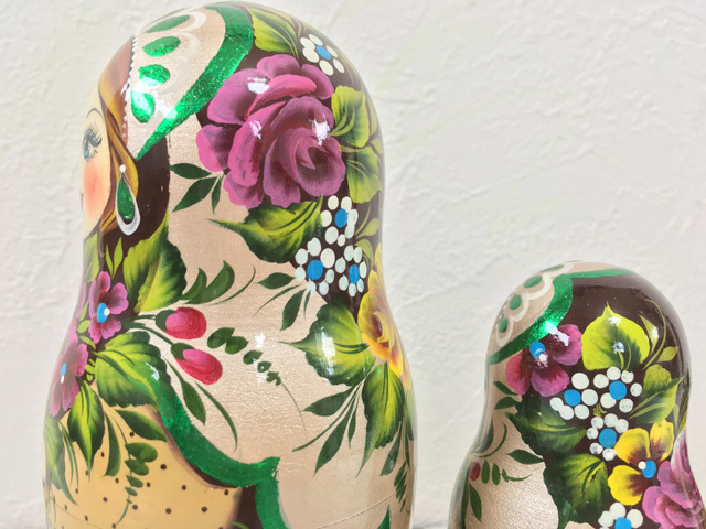 マトリョーシカにしては珍しいほどあか抜けたモデルのような顔立ちです。