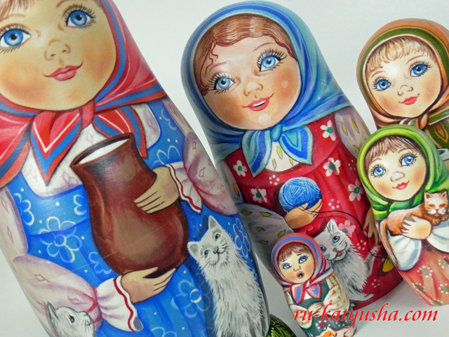 猫とのくらし☆アーティスト★MarinaKhromova_マトリョーシカ_5ピース