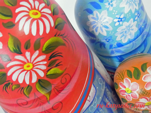 一番大きな人形のサイズ…高さ約18cm、直径8.5cm。 菩提樹。つや消しニス加工。 ロシア製(サンクト・ペテルブルク)