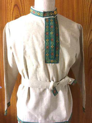 ルバシカ(リネン×緑)☆ロシアの民族衣装★ロシア雑貨