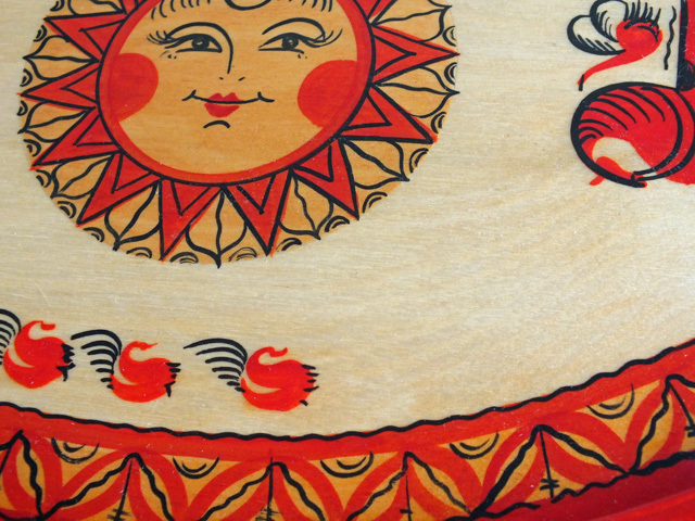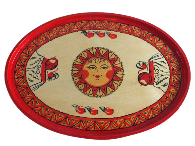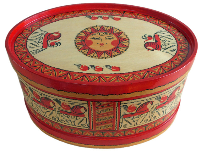 オーバルボックス北方塗り太陽☆メゼーニ塗り☆ロシア雑貨
