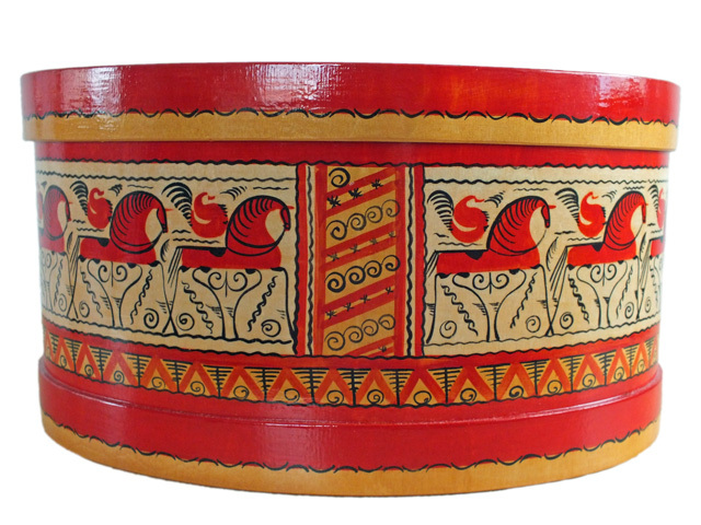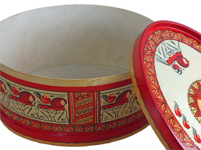 商品説明: ロシアの北方地方、アルハンゲリスク州で伝統的に伝わっている絵付けの製法「メゼーニ塗り」を用いた手描きの木製箱です。
